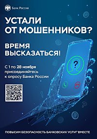 Центральный Банк Российской Федерации в целях оценки удовлетворённости потребителей уровнем безопасности финансовых услуг проводит опрос физических и юридических лиц в период с 1 по 28 ноября 2025 года.Опрос можно пройти по ссылке https://www.cbr.ru/information_security/anketa/ или QR-коду.