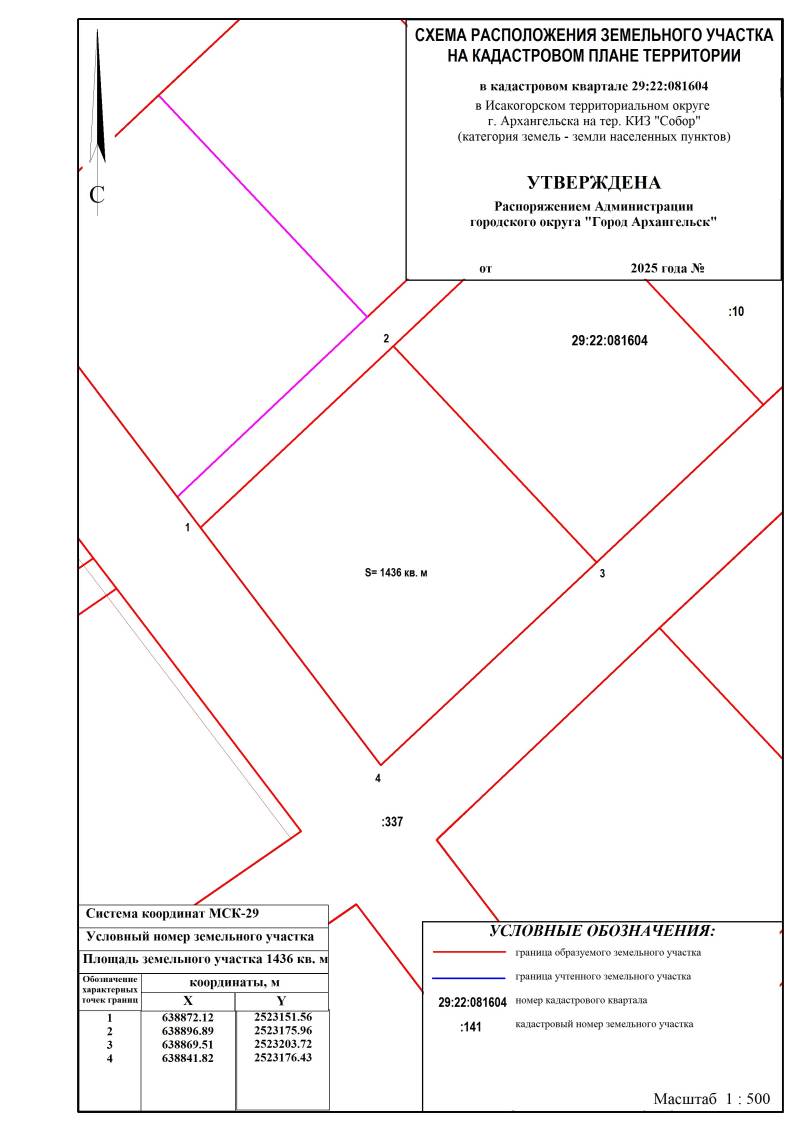 Департамент градостроительства Администрации городского округа "Город Архангельск" извещает о возможности предоставления земельного участка, расположенного в Исакогорском территориальном округе г. Архангельска на тер. КИЗ "Собор" площадью 1 436 кв. м, для индивидуального жилищного строительства согласно представленной схеме расположения земельного участка.